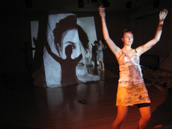 Developed with the generous support of the Department of Cultural Affairs’ DanceBridge program. inPrint was a movement and material-based performance examining the trafficking of women’s bodies through cultures and time. A group movement collage that incorporates live voice, projected image, and dance to explore the disposability of the female body in the human trafficking industry—a dark tale examining what we as a society throw away. inPrint offers striking images and movements which resonate on an emotional level with the audience, promoting dialogue and inquiry. Each performance was accompanied by a facilitated group discussion on one of the multi-layered issues addressing violence and humanity.